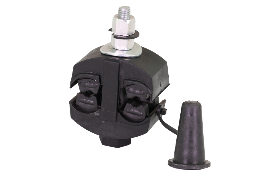 Предназначен для электрического соединения нулевой и токопроводящих жил СИП при ответвлениях от магистрали (медных или алюминиевых). Обеспечивает надежный электрический контакт. Температура монтажа до -20 °С. Зажим имеет металлическую срывную головку. Момент срыва головки болта соответствует эквивалентному усилию, необходимому для создания электрического контакта проводов (магистрали, абонентского ответвления, освещения). На прокалывающие элементы нанесена контактная смазка. Зажим легко устанавливаются на провод и не имеет выпадающих элементов. Болт изолирован от контактных деталей зажима. Возможность фиксации нижней части зажима ключом S 19  облегчает затяжку болтов.