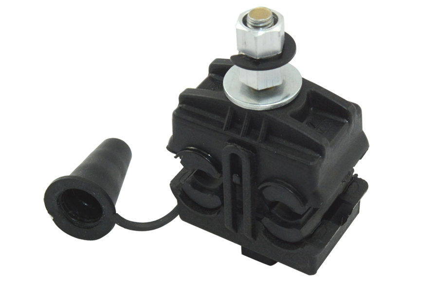 Предназначен для электрического соединения нулевой и токопроводящих жил СИП при ответвлениях от магистрали (медных или алюминиевых). Обеспечивает надежный электрический контакт. Температура монтажа до -20 °С. Зажим имеет металлическую срывную головку. Момент срыва головки болта соответствует эквивалентному усилию, необходимому для создания электрического контакта проводов (магистрали, абонентского ответвления, освещения). На прокалывающие элементы нанесена контактная смазка. Зажим легко устанавливаются на провод и не имеет выпадающих элементов. Болт изолирован от контактных деталей зажима. Возможность фиксации нижней части зажима ключом S 19  облегчает затяжку болтов.