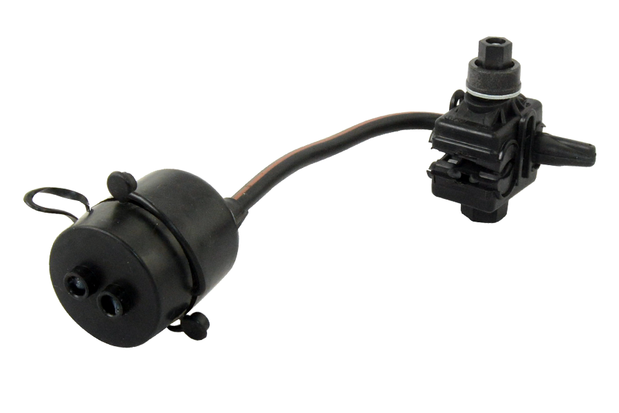 Срыв головки болта, обеспечивающего установку зажима на магистральный провод, соответствует эквивалентному усилию, необходимому для создания электрического контакта с проводом магистрали. На прокалывающие элементы нанесена контактная смазка. Зажим легко устанавливается на провод, отсутствуют выпадающие элементы. Болт, обеспечивающий установку зажима на магистральный провод, изолирован от контактных деталей зажима.
