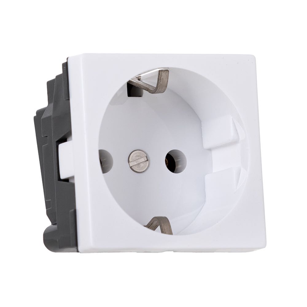 Модульное устройство для установки в кабель-каналы, настенные конструктивы или скрытного монтажа в стену. Она предназначена для подключения электрических приёмников бытового и промышленного назначения с номинальным током до 16 А и напряжением до 250 В